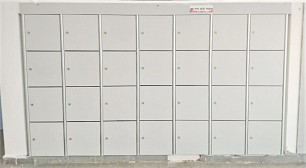 תאי לוקרים HPL דגם A2 עם פרופיל אלומיניום ומנעול תלוי.